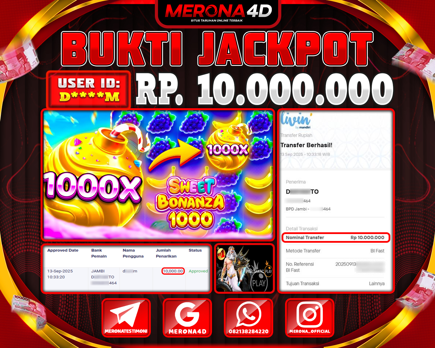 Selamat Kepada Member MERONA4D D*****M Telah Jackpot Di SWEET BONANZA 1000