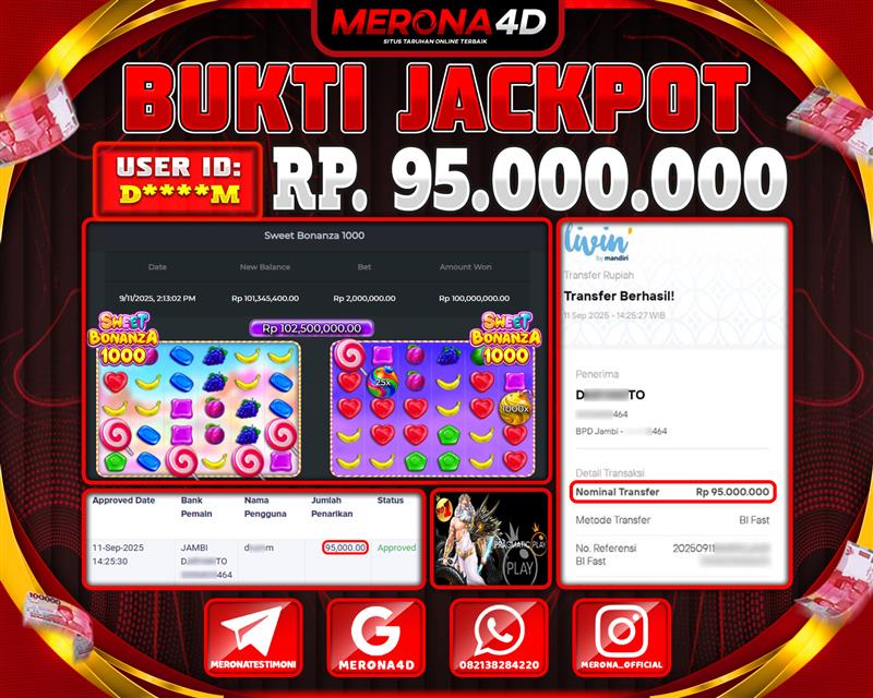 Selamat Kepada Member MERONA4D D****M Telah Jackpot Di SWEET BONANZA 1000