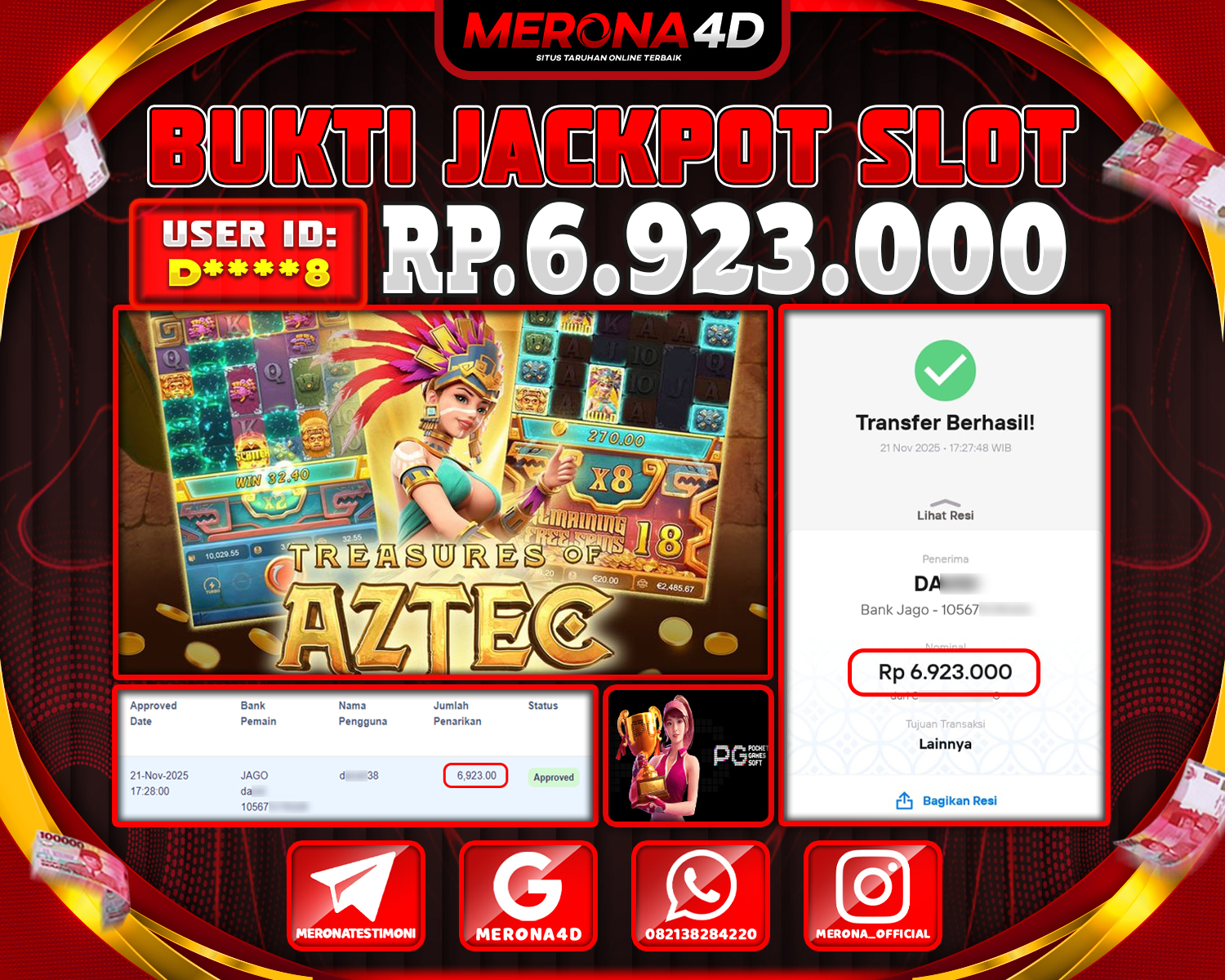 Selamat Kepada Member MERONA4D D****8 Telah Jackpot Di TREASURES OF AZTEC