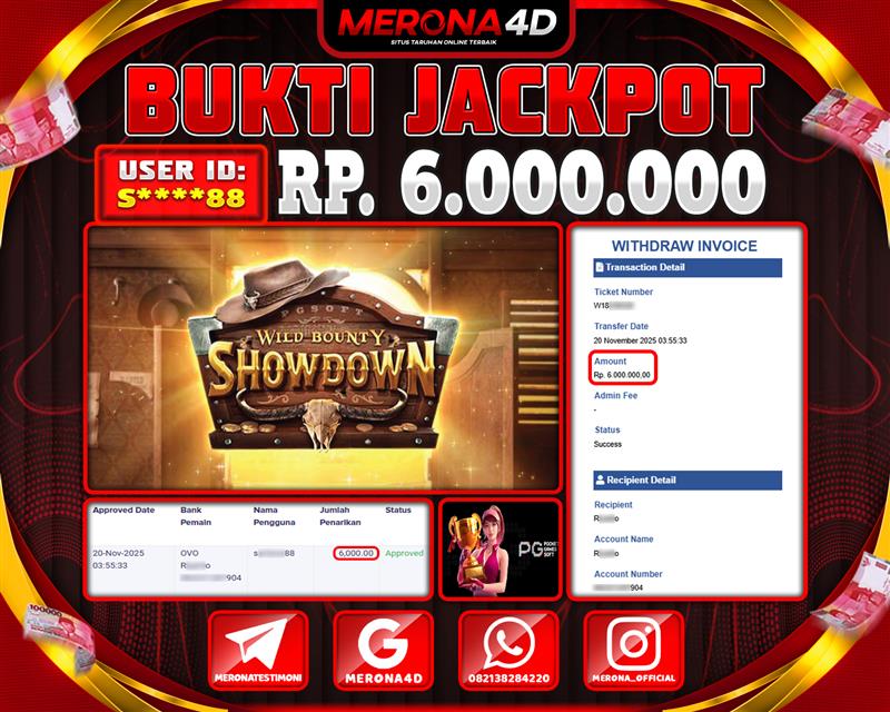 Selamat Kepada Member MERONA4D Kβ­‘οΏ½***οΏ½β­‘6 Telah Jackpot Di WILD BOUNTY SHOWDOWN