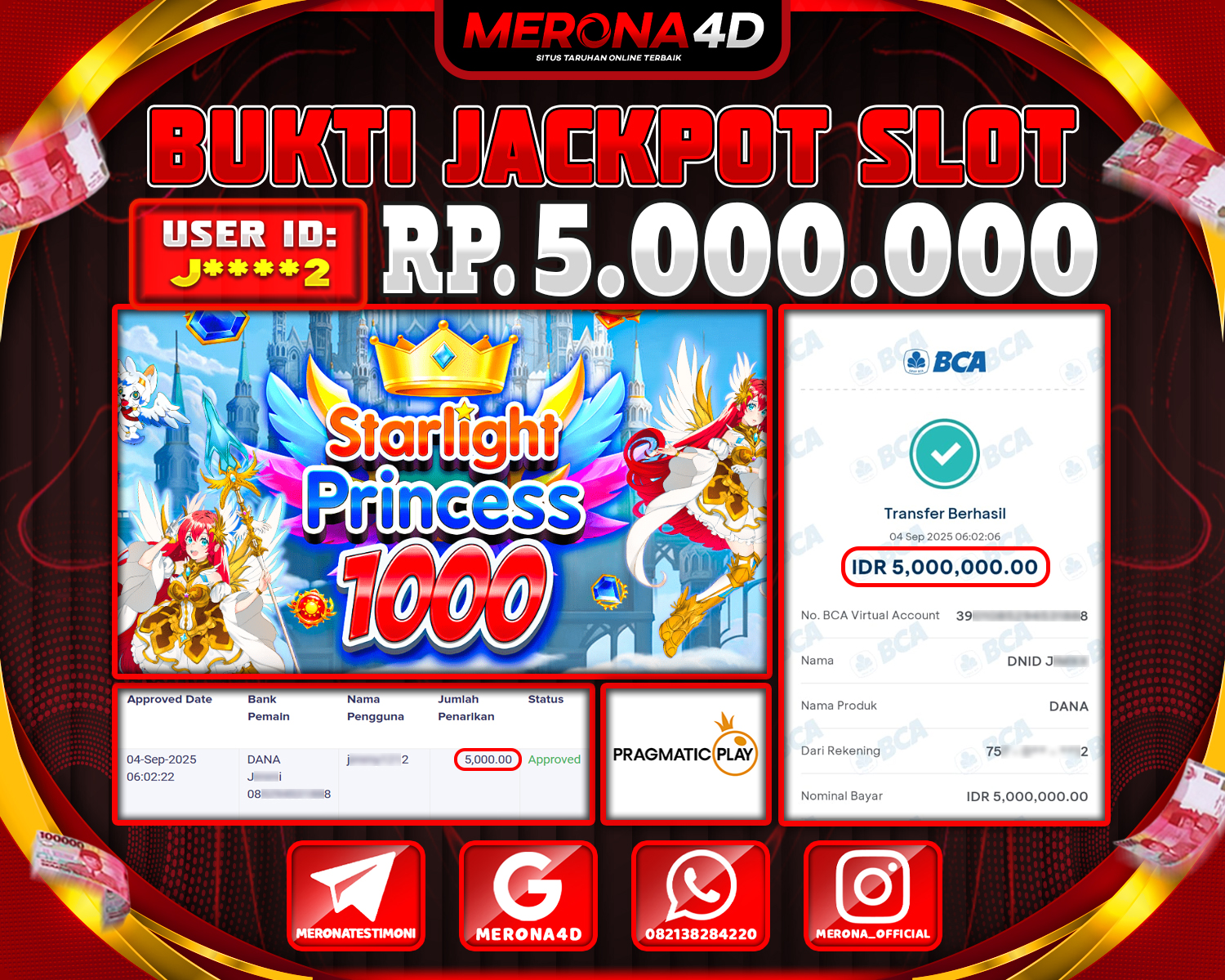 Selamat Kepada Member MERONA4D J****2 Telah Jackpot Di STARLIGHT PRINCESS 1000