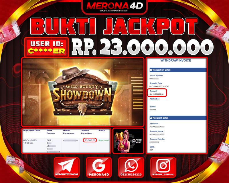 Selamat Kepada Member MERONA4D C*****R Telah Jackpot Di WILD BOUNTY SHOWDOWN