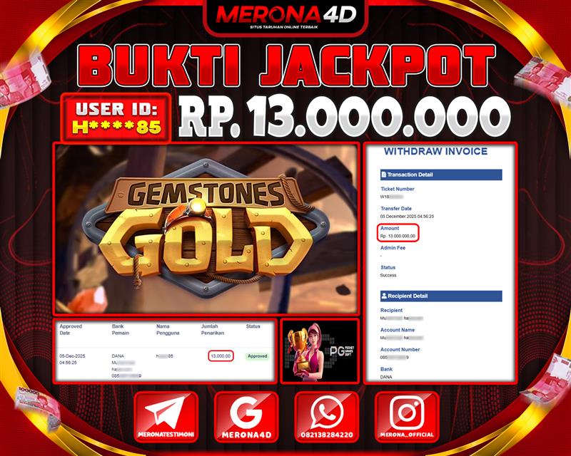Selamat Kepada Member MERONA4D H*****6 Telah Jackpot Di GEMSTONES GOLD