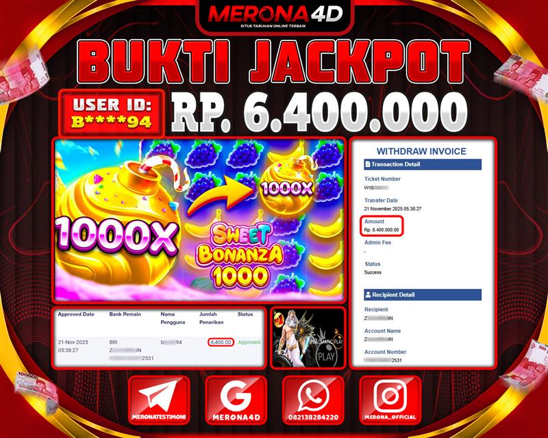 Selamat Kepada Member MERONA4D B*****94 Telah Jackpot Di SWEET BONANZA 1000
