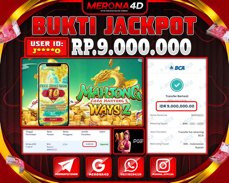 Selamat Kepada Member MERONA4D Aβ­‘οΏ½***οΏ½β­‘N Telah Jackpot Di MAHJONG WAYS