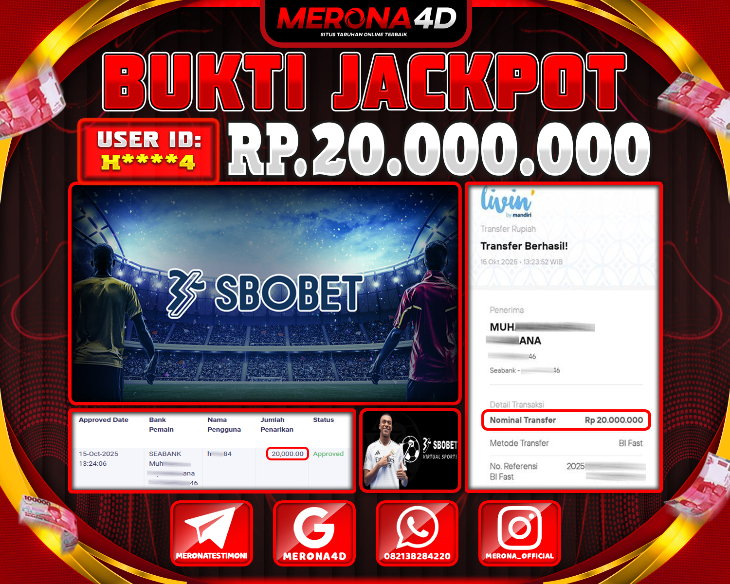 Selamat Kepada Member MERONA4D Hβ­‘οΏ½***οΏ½β­‘4 Telah Jackpot Di SBOVIRTUALGAMES