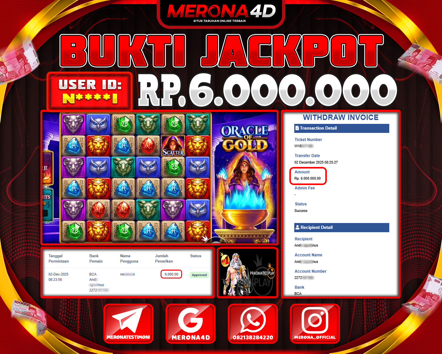 Selamat Kepada Member MERONA4D N****I Telah Jackpot Di ORACLE OF GOLD