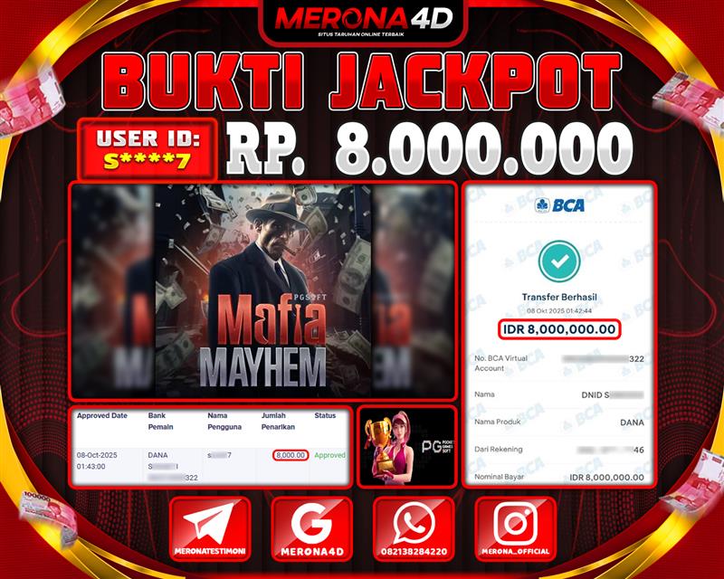Selamat Kepada Member MERONA4D S*****7 Telah Jackpot Di MAFIA MAYHEM