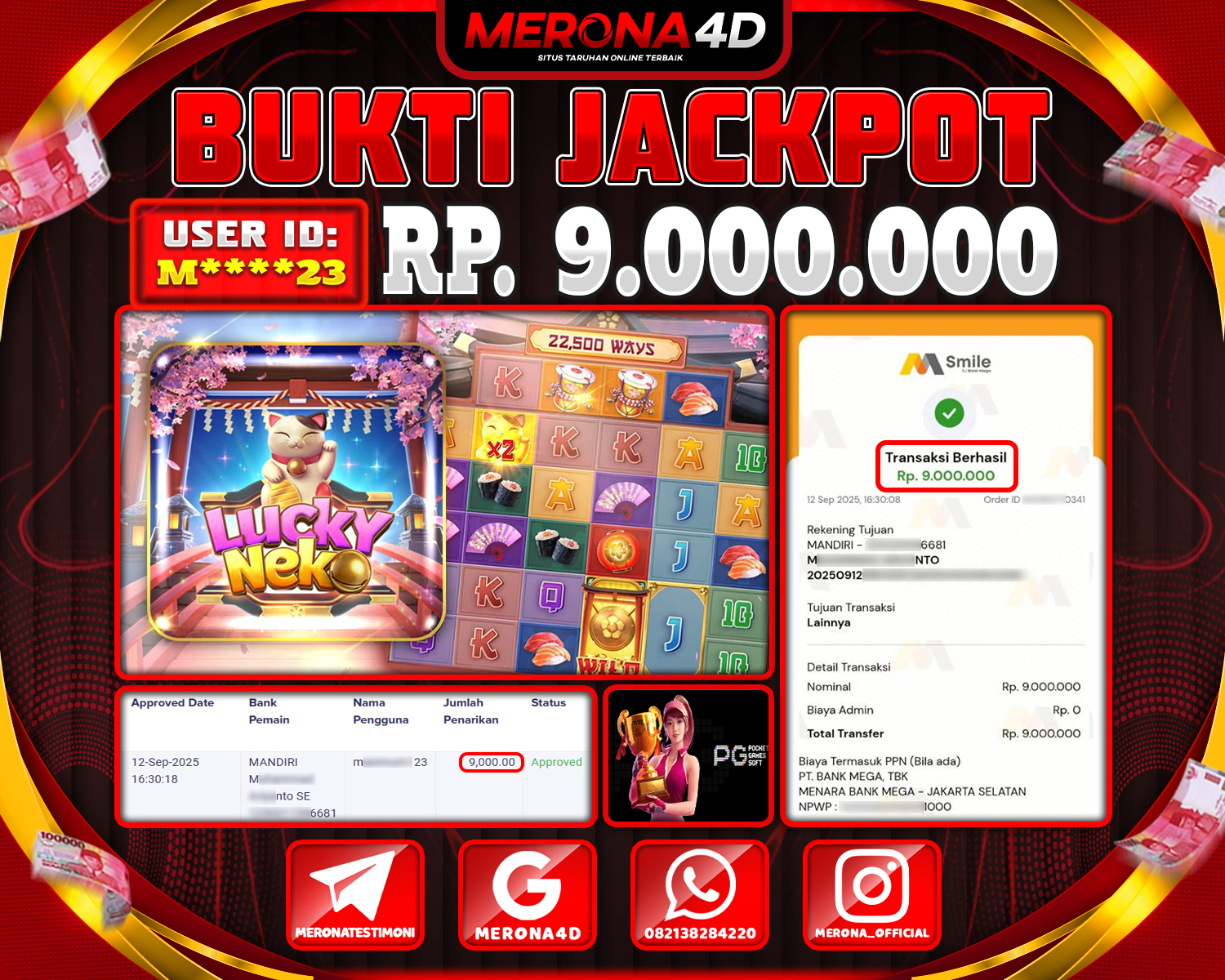 Selamat Kepada Member MERONA4D M*****3 Telah Jackpot Di LUCKY NEKO