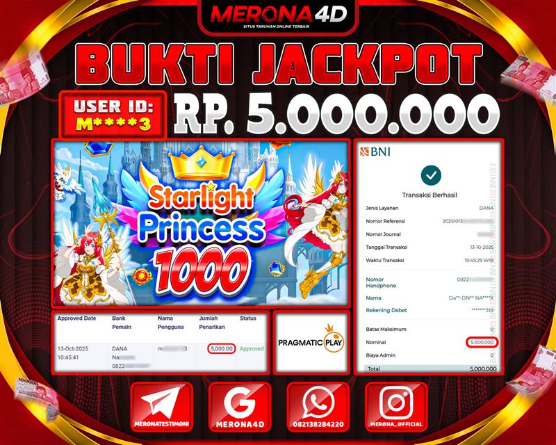 Selamat Kepada Member MERONA4D Mβ­‘οΏ½***οΏ½β­‘3 Telah Jackpot Di STARLIGHT PRINCESS 1000