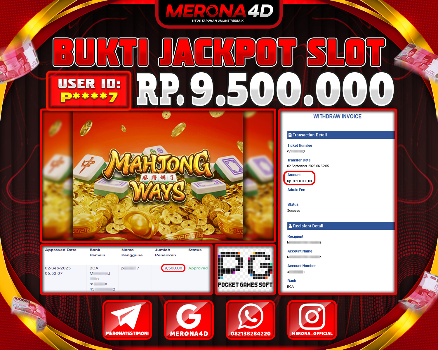 Selamat Kepada Member MERONA4D P****7 Telah Jackpot Di MAHJONG WAYS