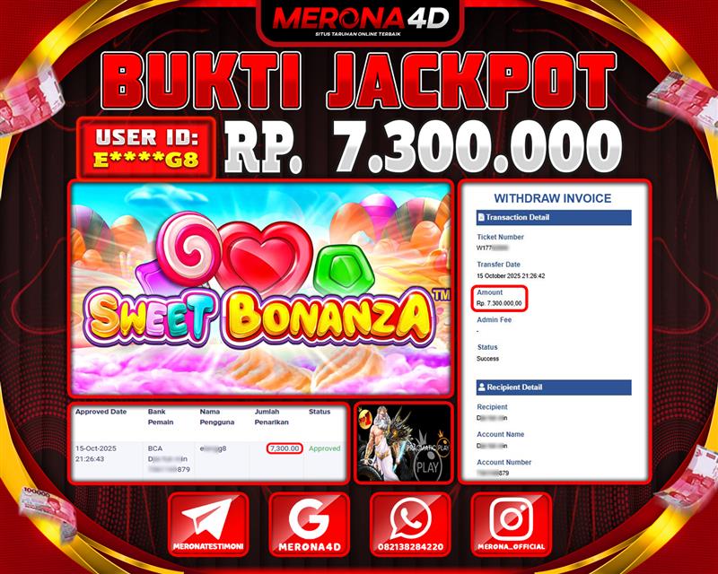 Selamat Kepada Member MERONA4D E*****G8 Telah Jackpot Di SWEET BONANZA