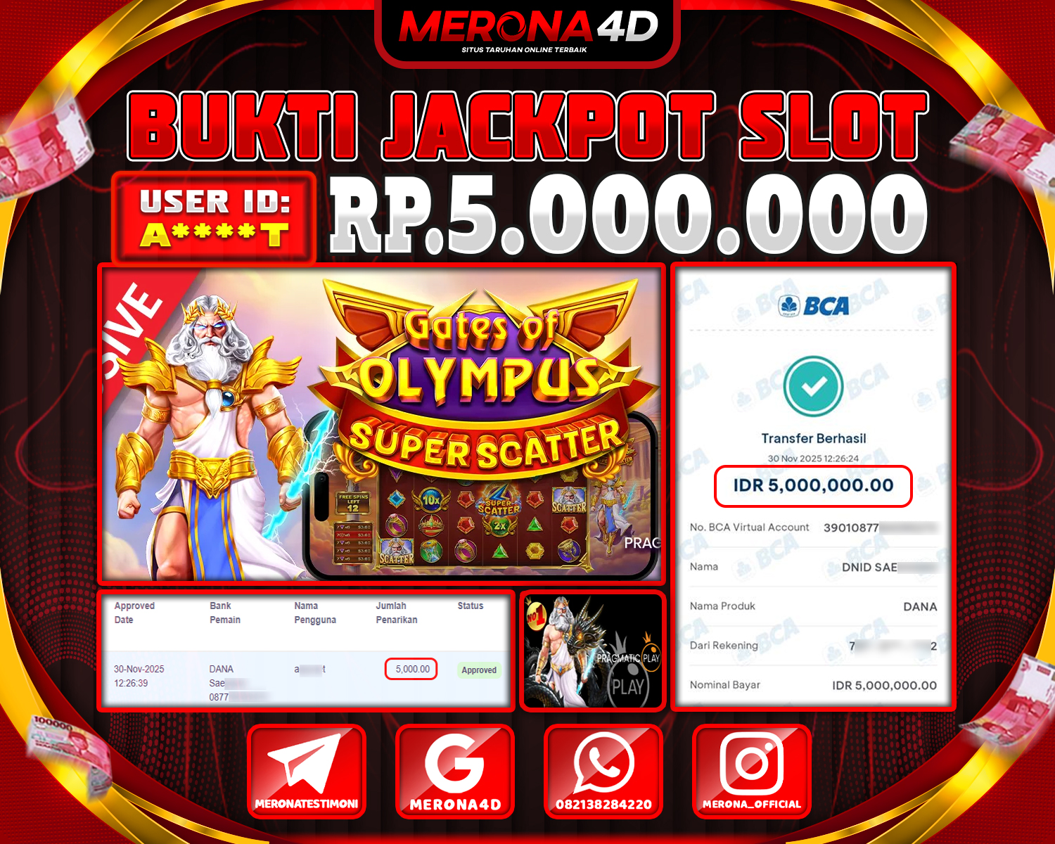 Selamat Kepada Member MERONA4D A****T Telah Jackpot Di GATES OF OLYMPUS SUPER SCATTER