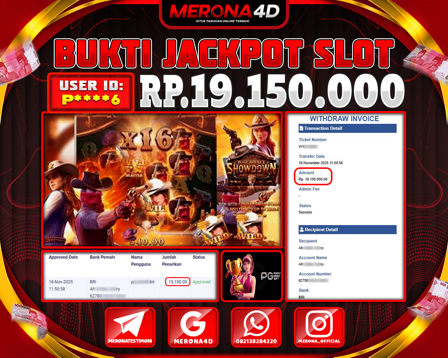 Selamat Kepada Member MERONA4D M*****08 Telah Jackpot Di WILD BOUNTY SHOWDOWN