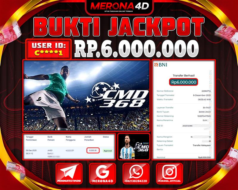 Selamat Kepada Member MERONA4D C*****1 Telah Jackpot Di CMD