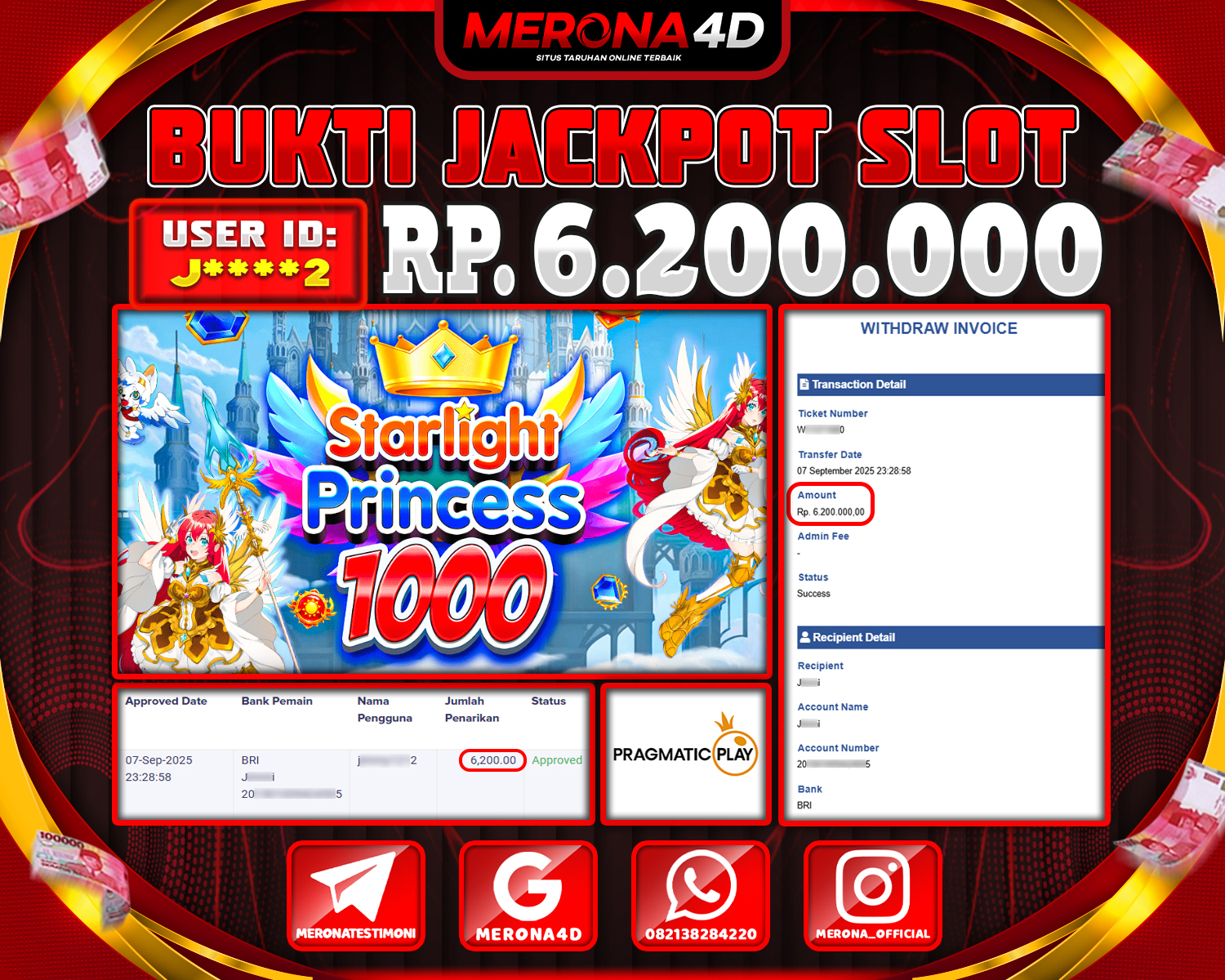 Selamat Kepada Member MERONA4D J****2 Telah Jackpot Di STARLIGHT PRINCESS 1000