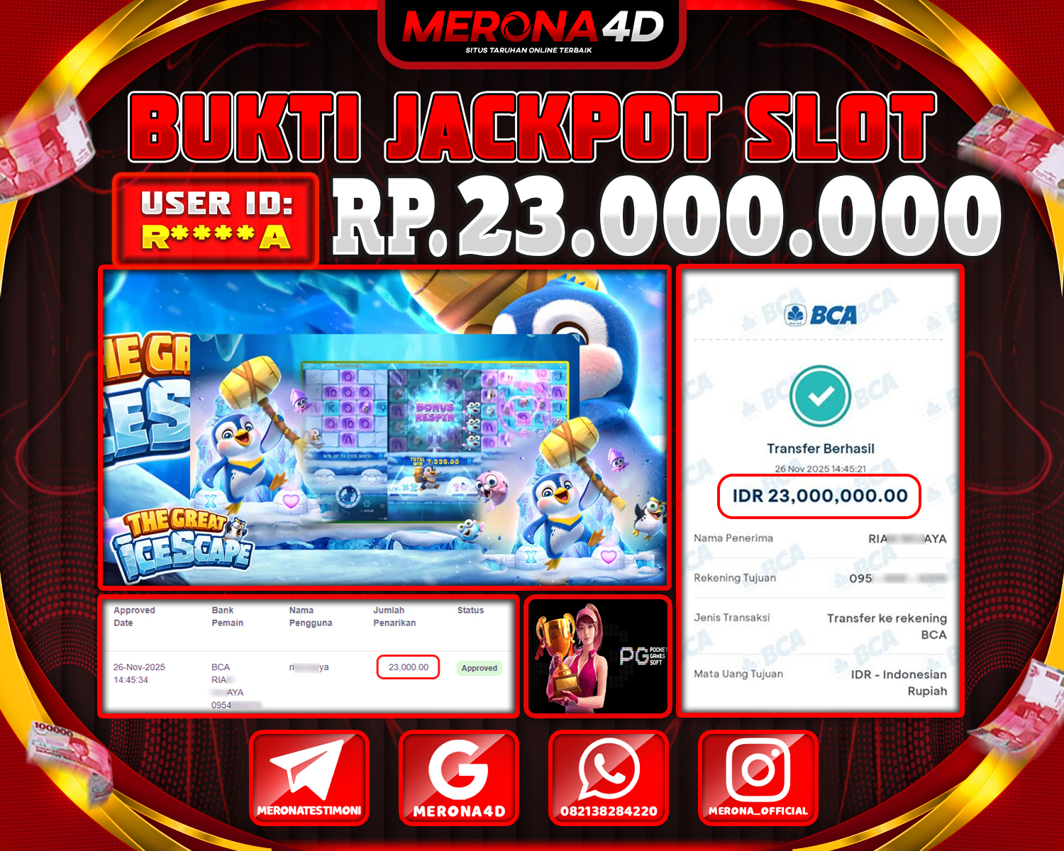 Selamat Kepada Member MERONA4D A*****1 Telah Jackpot Di THE GREAT ICESCAPE