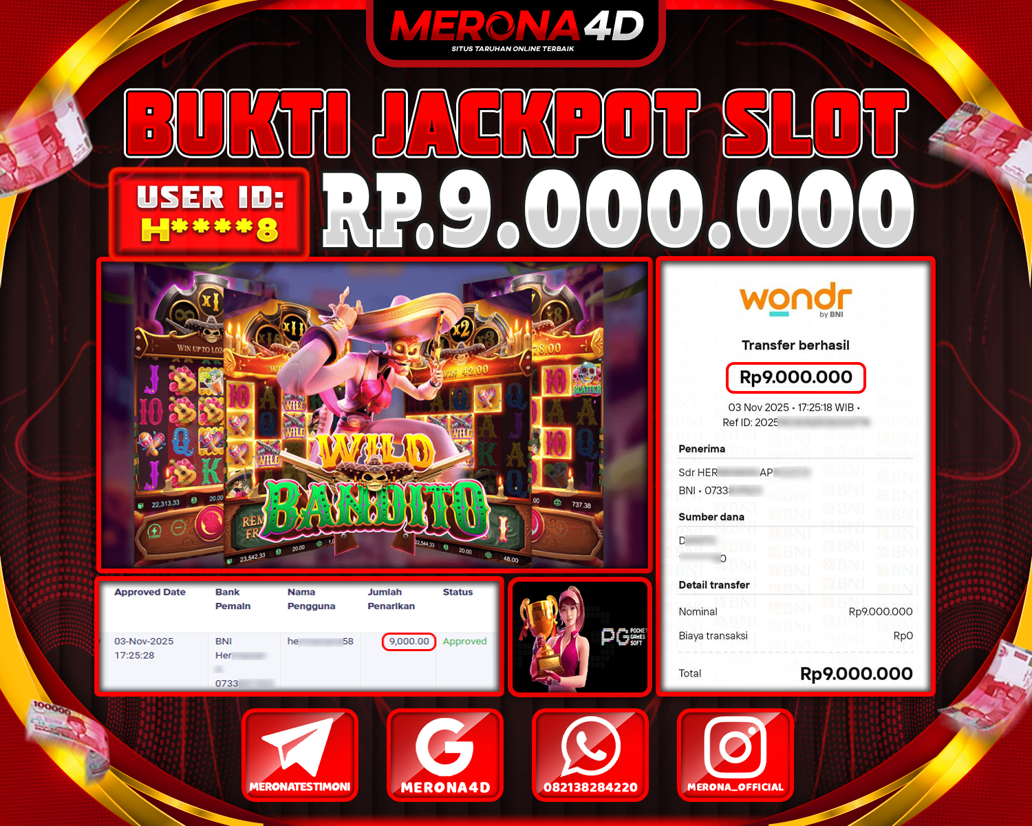 Selamat Kepada Member MERONA4D Hβ­‘οΏ½***οΏ½β­‘8 Telah Jackpot Di WILD BANDITO
