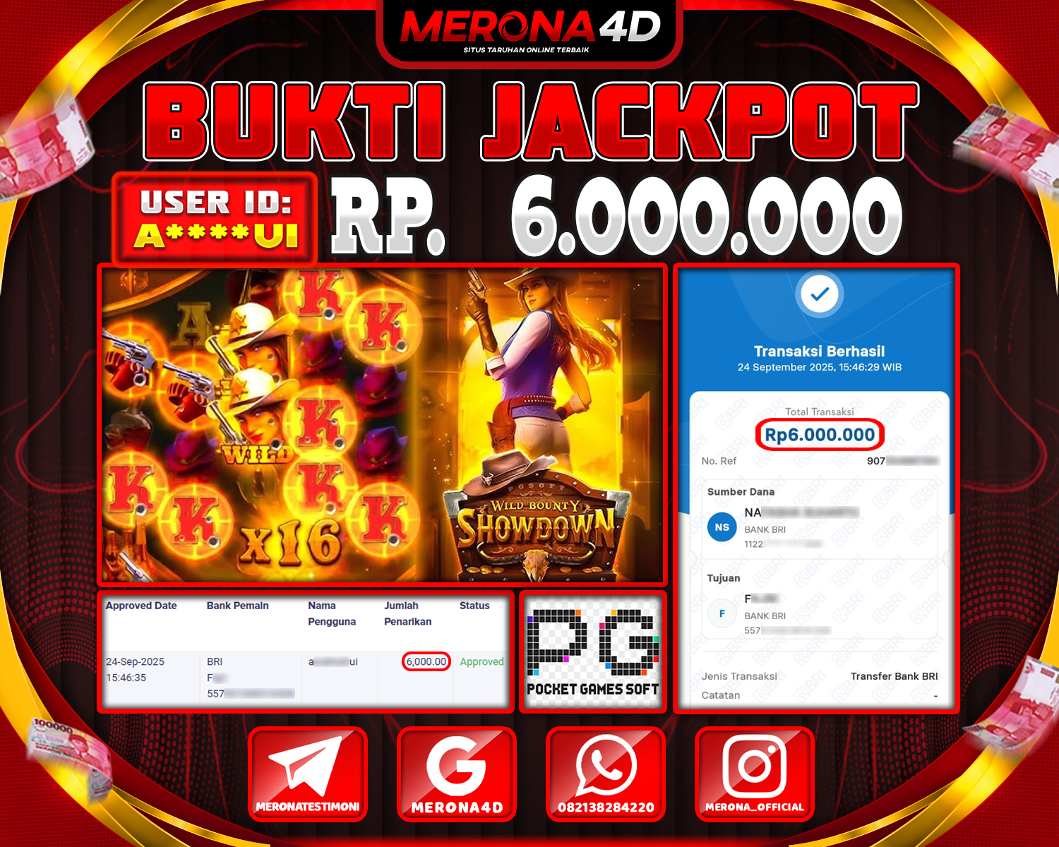 Selamat Kepada Member MERONA4D A****I Telah Jackpot Di WILD BOUNTY SHOWDOWN